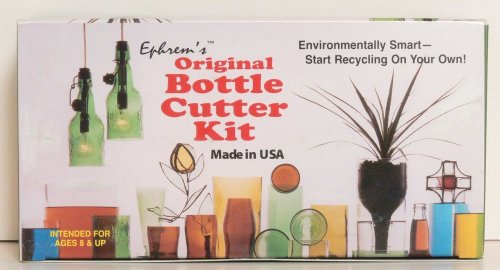 Whether you "upcycle" or "recycle", creating art with re-purposed bottles is easy with this durable metal cutter. The base can be adjusted for different heights and provides secure support for scores that line up. Simply place a bottle or jar in the jig and turn - only light pressure is needed to produce an ideal score. Heat the score over a candle flame and cool with ice. The results will amaze you, clean breaks nearly every time. Even thick champagne bottles break easily and smoothly. Kit comes with the classic Ephrem's Bottle and Jar Cutter, an 18 page instructional booklet with over 22 project, a 4 page quick-start guide, candle, polishing paper and compound. This is a must have for anyone interested in recycling or re-purposed crafts.